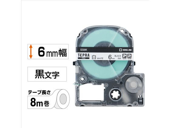 キングジム テプラPRO用テープ 6mm 白 黒文字 SS6K 1個(ご注文単位1個)【直送品】