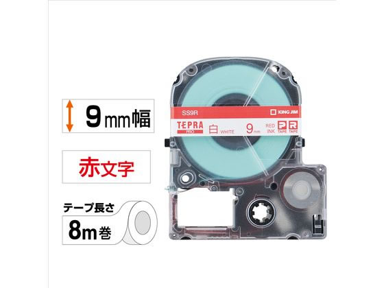 キングジム テプラPRO用テープ 9mm 白 赤文字 SS9R 1個(ご注文単位1個)【直送品】