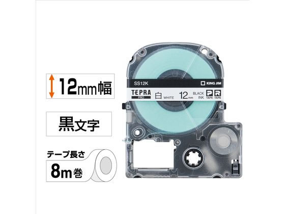 キングジム テプラPRO用テープ 12mm 白 黒文字 SS12K 1個(ご注文単位1個)【直送品】