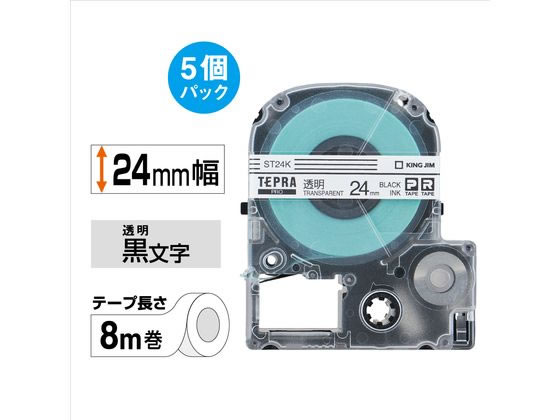 キングジム テプラPROテープエコパック24mm 透明 黒文字 5個 1箱(ご注文単位1箱)【直送品】