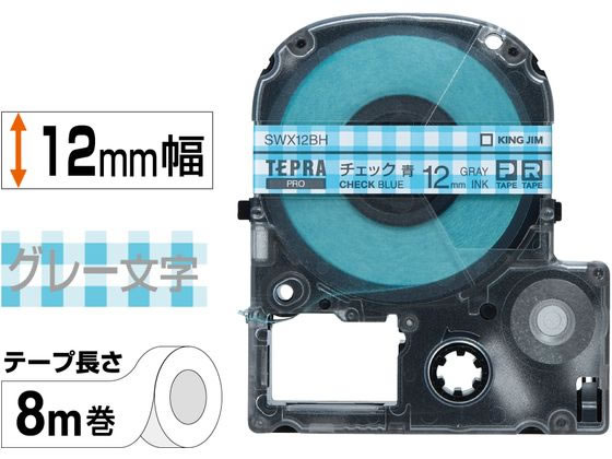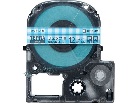 キングジム PROテープ チェック青 グレー文字 SWX12BH 1個(ご注文単位1個)【直送品】