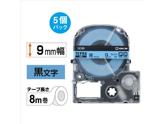 キングジム テプラPROテープ 9mm 青/黒文字 5個 SC9B-5P 1箱(ご注文単位1箱)【直送品】