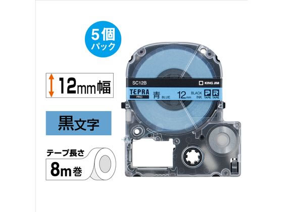 キングジム テプラPROテープ 12mm 青/黒文字 5個 SC12B-5P 1箱(ご注文単位1箱)【直送品】