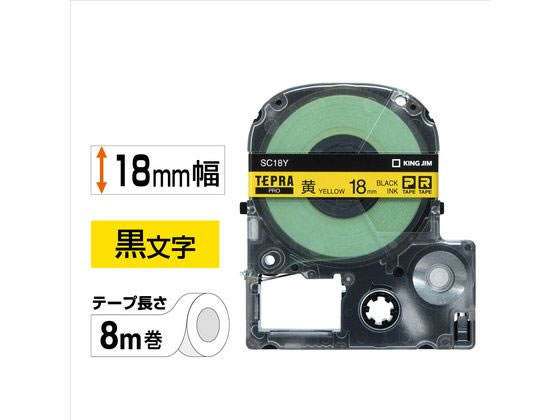 キングジム PRO用テープ パステル 18mm 黄 黒文字 SC18Y 1個(ご注文単位1個)【直送品】