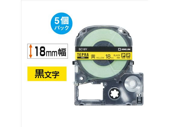 キングジム テプラPROテープエコパック 18mm 黄/黒文字 5個 1箱(ご注文単位1箱)【直送品】