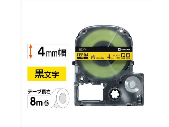 キングジム PRO用テープ パステル 4mm 黄 黒文字 SC4Y 1個(ご注文単位1個)【直送品】
