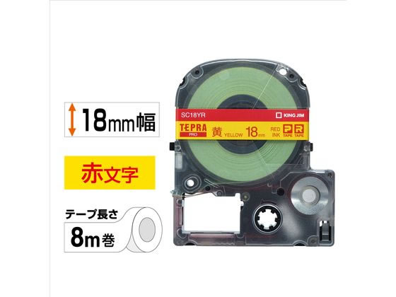 キングジム テプラPRO用テープ18mm(パステル)黄 赤文字 SC18YR 1個(ご注文単位1個)【直送品】