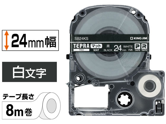 キングジム テプラPRO用テープ マット 24mm 黒 白文字 SB24KS 1個(ご注文単位1個)【直送品】