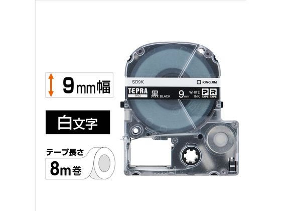キングジム PRO用テープ ビビット 9mm 黒 白文字 SD9K 1個(ご注文単位1個)【直送品】