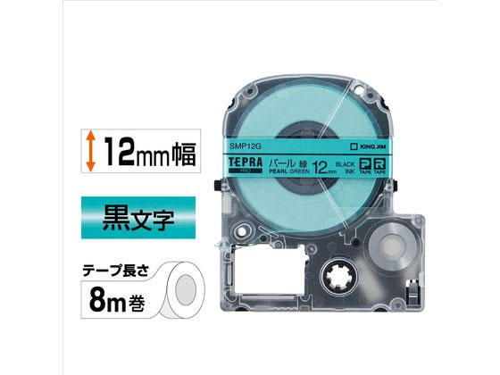 キングジム PRO用ラベル 12mm パール 緑・黒文字 SMP12G 1個(ご注文単位1個)【直送品】
