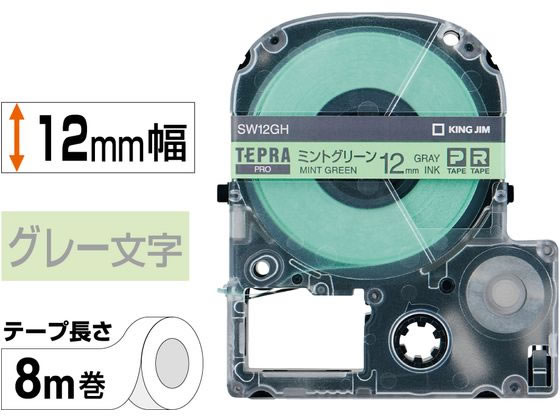 キングジム PROテープ ミントグリーン グレー文字 SW12GH 1個(ご注文単位1個)【直送品】
