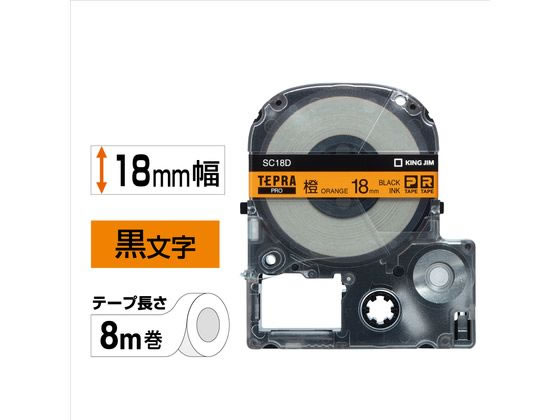 キングジム PRO用テープ パステル 18mm オレンジ 黒文字 SC18D 1個(ご注文単位1個)【直送品】