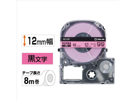 キングジム PRO用テープ パステル 12mm ピンク 黒文字 SC12P 1個(ご注文単位1個)【直送品】