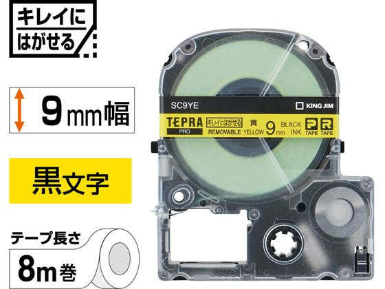 キングジム テプラPRO用 キレイにはがせるラベル 9mm 黄 SC9YE 1個(ご注文単位1個)【直送品】