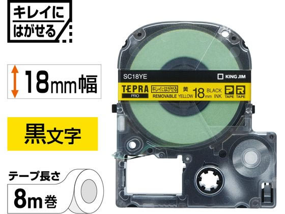 キングジム テプラPRO用キレイにはがせるラベル18mm 黄 SC18YE 1個(ご注文単位1個)【直送品】
