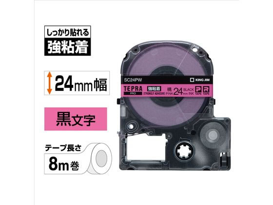 キングジムテープカートリッジ強粘着ラベル24mmピンク 黒字 SC24PW 1個(ご注文単位1個)【直送品】