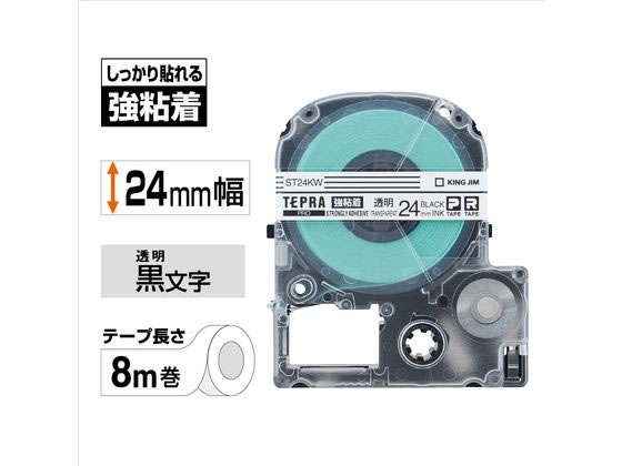 キングジムテープカートリッジ強粘着ラベル24mm透明 黒字 ST24KW 1個(ご注文単位1個)【直送品】