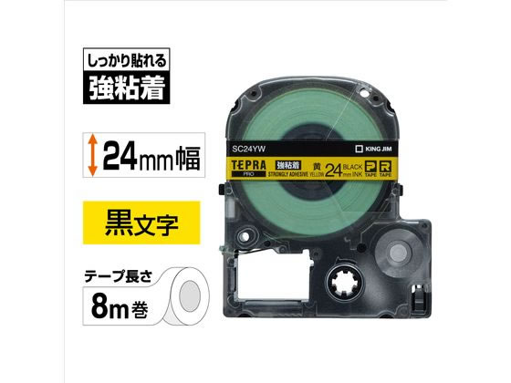キングジムテープカートリッジ強粘着ラベル24mm黄 黒文字 SC24YW 1個(ご注文単位1個)【直送品】