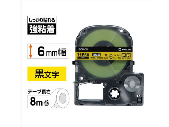 キングジムテープカートリッジ 強粘着ラベル6mm 黄 黒文字 SC6YW 1個(ご注文単位1個)【直送品】