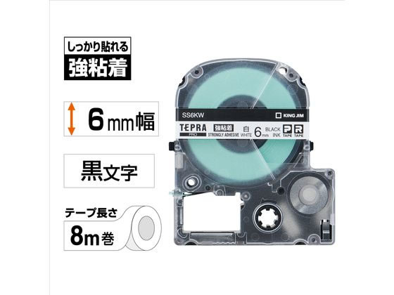 キングジム テープカートリッジ 強粘着ラベル6mm白 黒文字 SS6KW 1個(ご注文単位1個)【直送品】