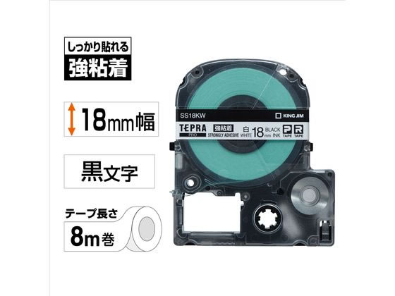 キングジムテープカートリッジ強粘着ラベル18mm白 黒文字 SS18KW 1個(ご注文単位1個)【直送品】