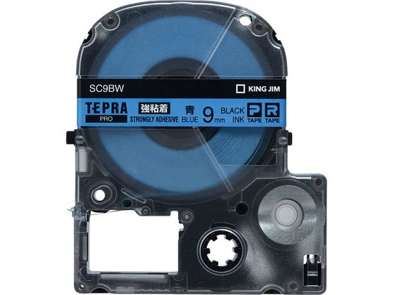 キングジム テープカートリッジ 強粘着ラベル9mm青 黒文字 SC9BW 1個(ご注文単位1個)【直送品】