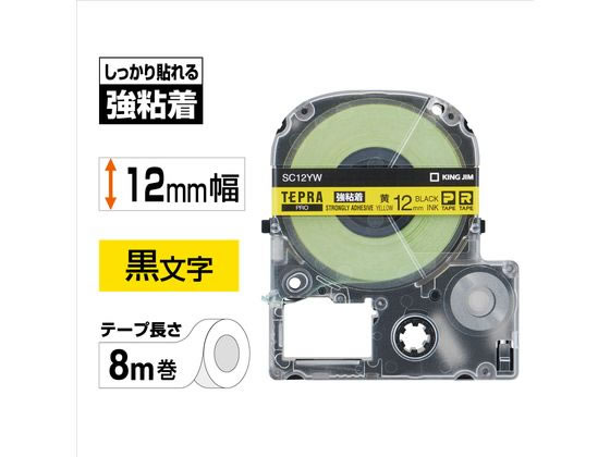 キングジムテープカートリッジ強粘着ラベル12mm黄 黒文字 SC12YW 1個(ご注文単位1個)【直送品】