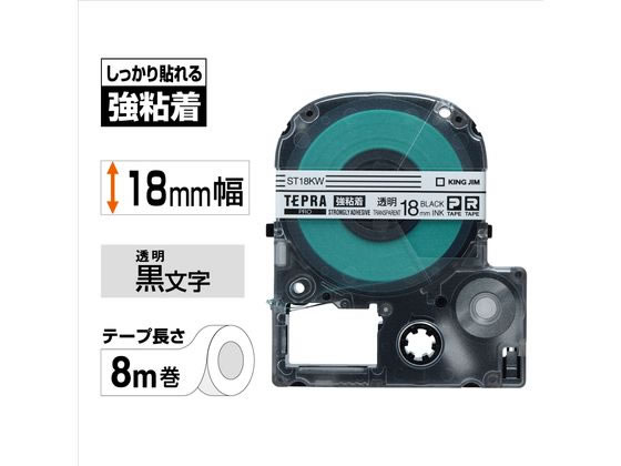 キングジムテープカートリッジ強粘着ラベル18mm透明 黒字 ST18KW 1個(ご注文単位1個)【直送品】