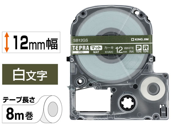 キングジム テプラPRO用テープ マット 12mm カーキ 白文字 SB12GS 1個(ご注文単位1個)【直送品】