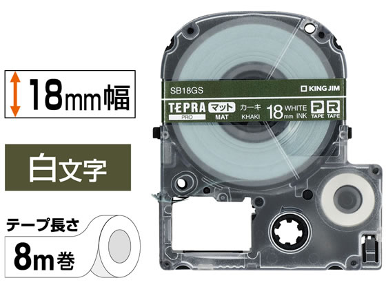 キングジム テプラPRO用テープ マット 18mm カーキ 白文字 SB18GS 1個(ご注文単位1個)【直送品】