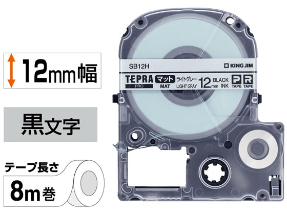 キングジム テプラPRO用テープマット12mmライトグレー黒文字 SB12H 1個(ご注文単位1個)【直送品】