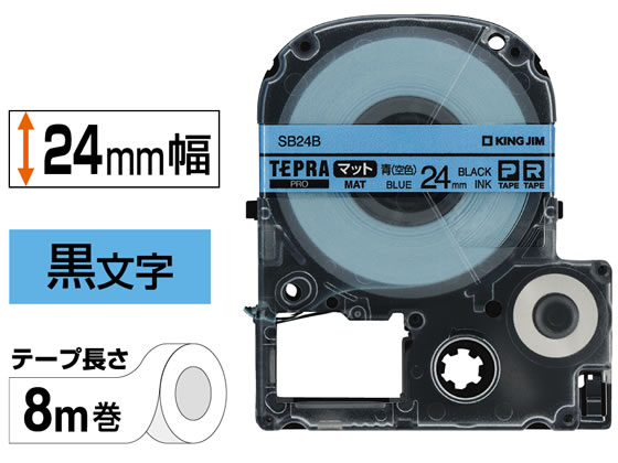 キングジム テプラPRO用テープ マット 24mm 空色 黒文字 SB24B 1個(ご注文単位1個)【直送品】