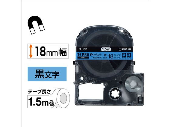 キングジム テープカートリッジマグネットテープ18mm青 黒文字 SJ18B 1個(ご注文単位1個)【直送品】