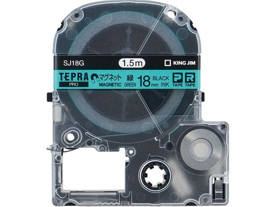 キングジム テープカートリッジマグネットテープ18mm緑 黒文字 SJ18G 1個(ご注文単位1個)【直送品】