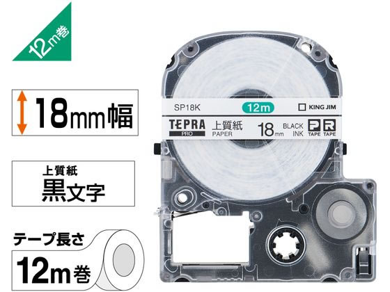 キング PRO用テープ 上質紙 18mm 黒文字 SP18K 1個(ご注文単位1個)【直送品】