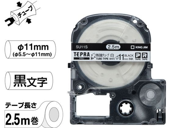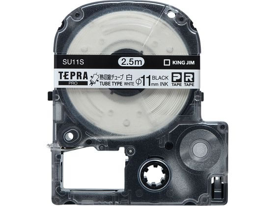 キングジムテプラPRO用テープ11mm熱収縮チューブ白 黒字 SU11S 1個(ご注文単位1個)【直送品】