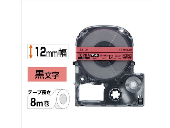 キングジム PRO用テープ マットラベル 12mm 赤(薄紅) 黒文字 1個(ご注文単位1個)【直送品】