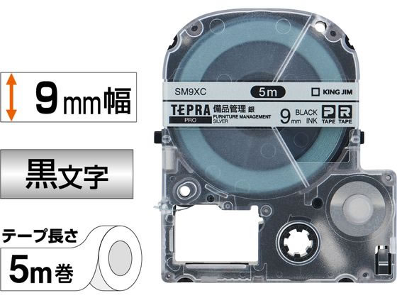 キングジム PROテープ 備品管理ラベル 9mm 銀 黒文字 SM9XC 1個(ご注文単位1個)【直送品】