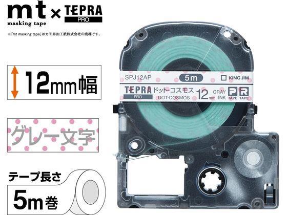 キングジム PRO用マスキングテープ 12mm ドットコスモス グレー文字 1個(ご注文単位1個)【直送品】