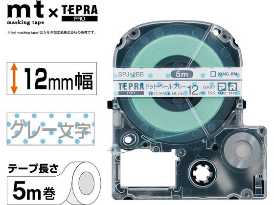 キングジム PRO用マスキングテープ 12mm ドットペールブルー グレー文字 1個(ご注文単位1個)【直送品】