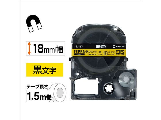 キングジム テープカートリッジマグネットテープ18mm黄 黒文字 SJ18Y 1個(ご注文単位1個)【直送品】