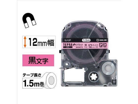 キングジム テープカートリッジ マグネットテープ 12mm ピンク/黒文字 1個(ご注文単位1個)【直送品】