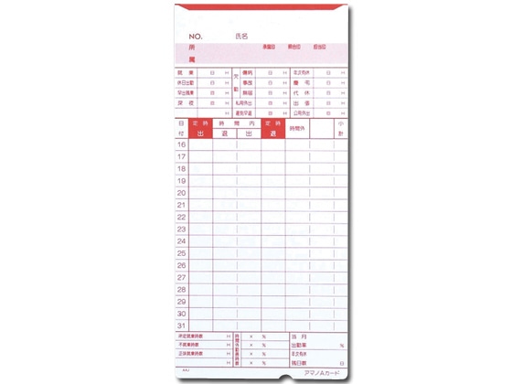 アマノ タイムカードA 100枚入 〈1AM〉Aカード J-TCARD-A 1冊(ご注文単位1冊)【直送品】