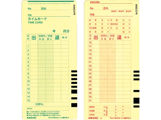 アマノ タイムカード TimeP@CKカード(4欄印字)A 100枚 1箱(ご注文単位1箱)【直送品】