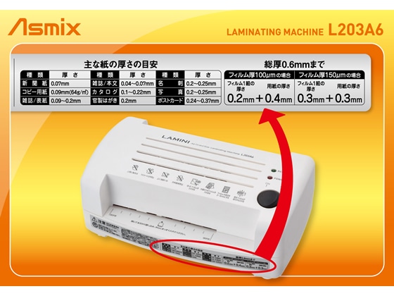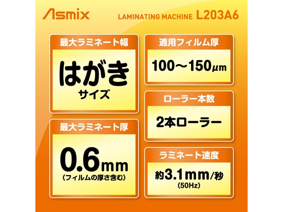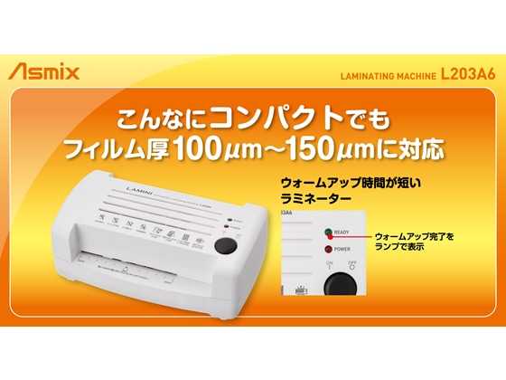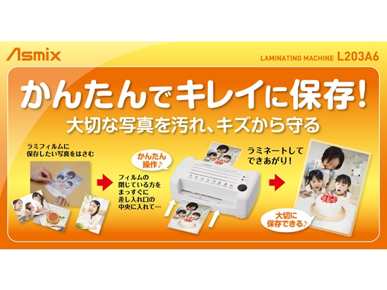 アスカ はがきサイズ対応2ローラーラミネーター LAMINI ホワイト L203A6 1台(ご注文単位1台)【直送品】