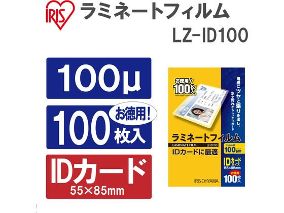 アイリスオーヤマ ラミネートフィルム 100μ IDカードサイズ 100枚 LZ-ID100 1箱(ご注文単位1箱)【直送品】