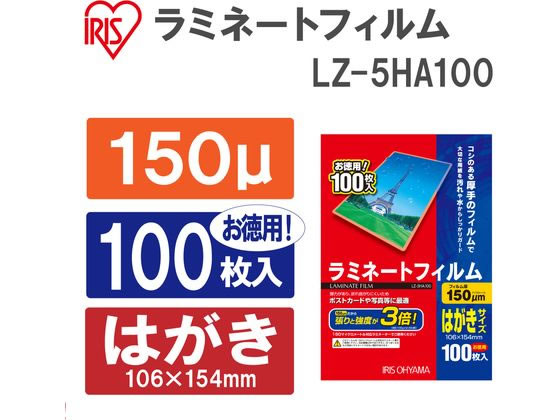 アイリスオーヤマ ラミネートフィルムはがきサイズ150ミクロン100枚 LZ-5HA100 1セット(ご注文単位1セット)【直送品】