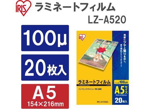 アイリスオーヤマ ラミネートフィルム 100μ A5サイズ 20枚 LZ-A520 1袋(ご注文単位1袋)【直送品】