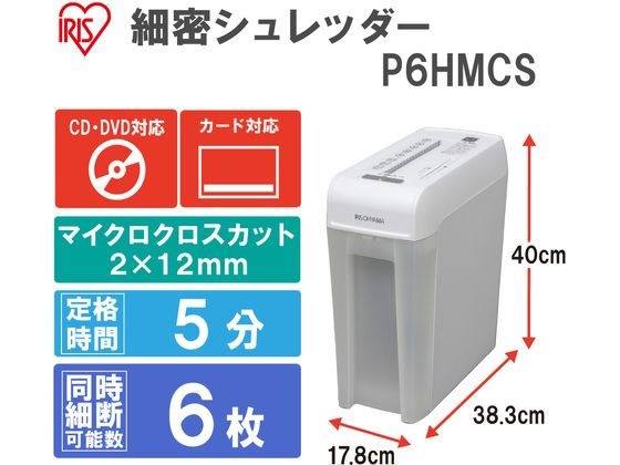 アイリスオーヤマ 細密シュレッダー ホワイト P6HMCS 1台(ご注文単位1台)【直送品】