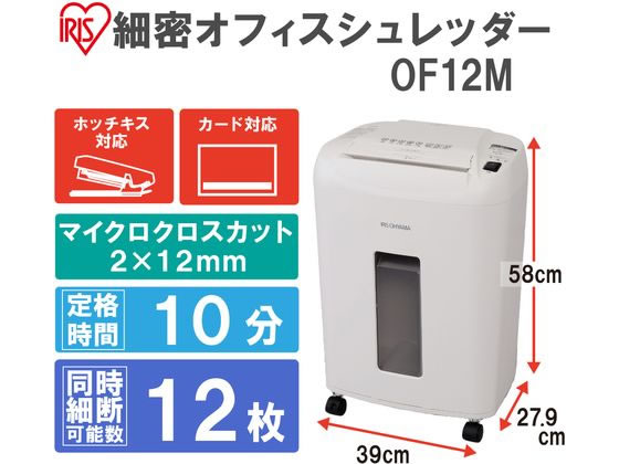 アイリスオーヤマ 細密オフィスシュレッダー ホワイト OF12M 1台(ご注文単位1台)【直送品】